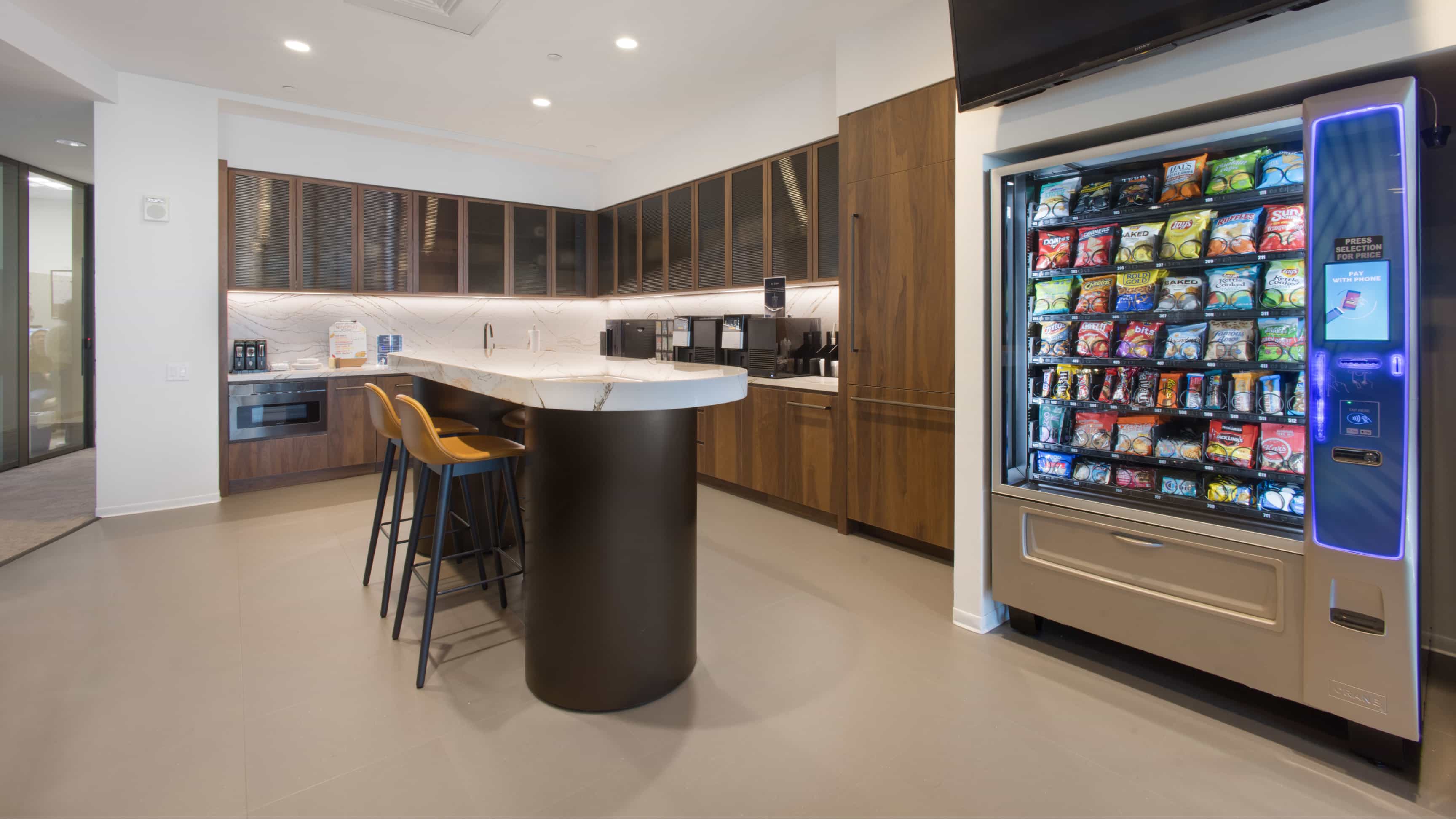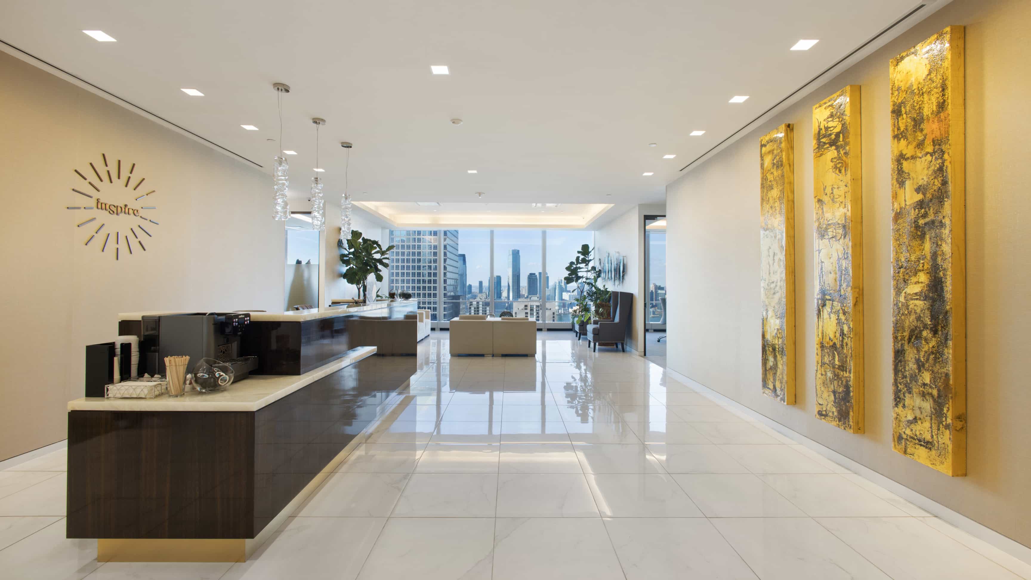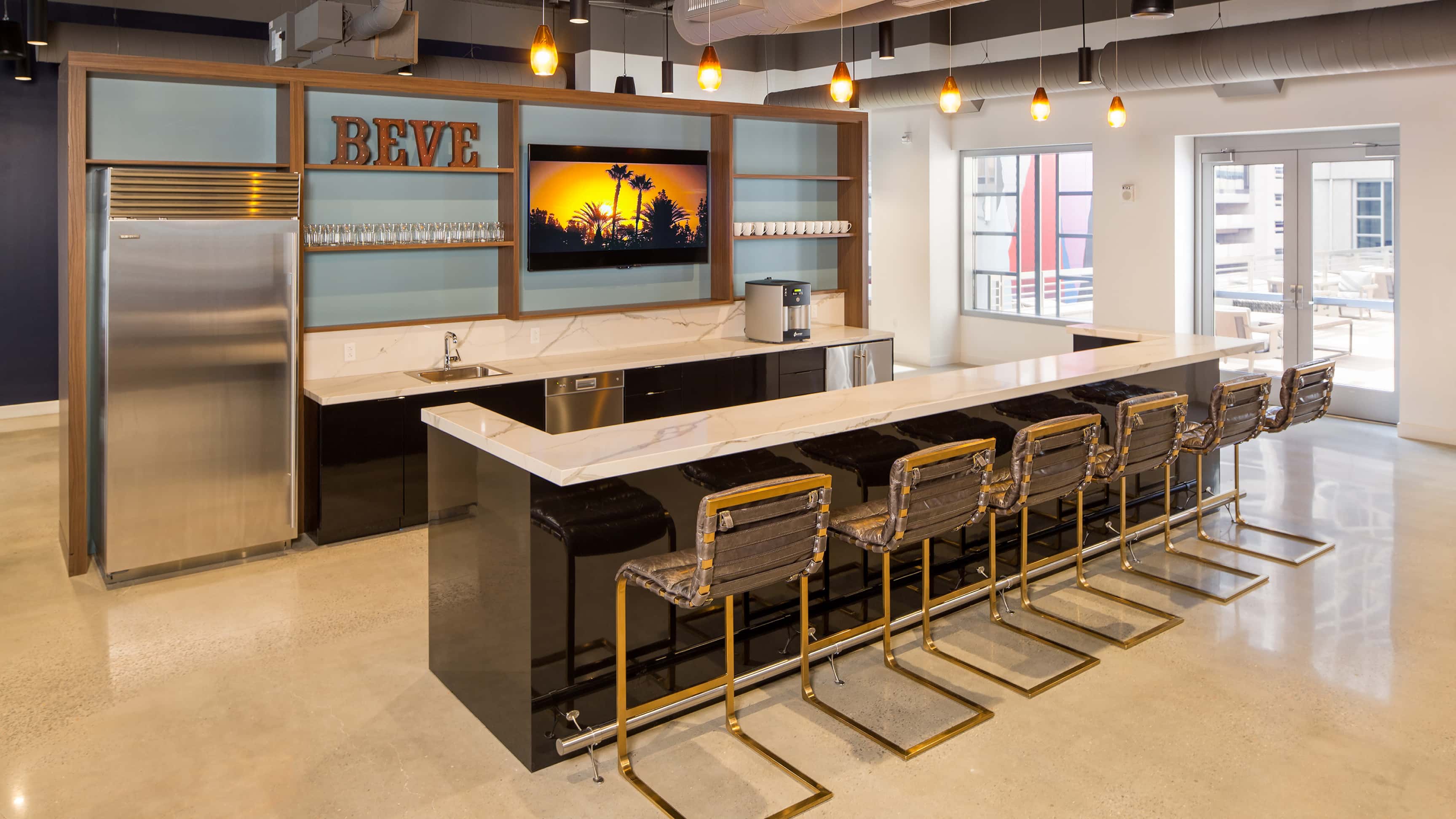 A beautifully appointed lounge with comfortable seating areas, an arcade, a secret speakeasy for Inspire members, and more.