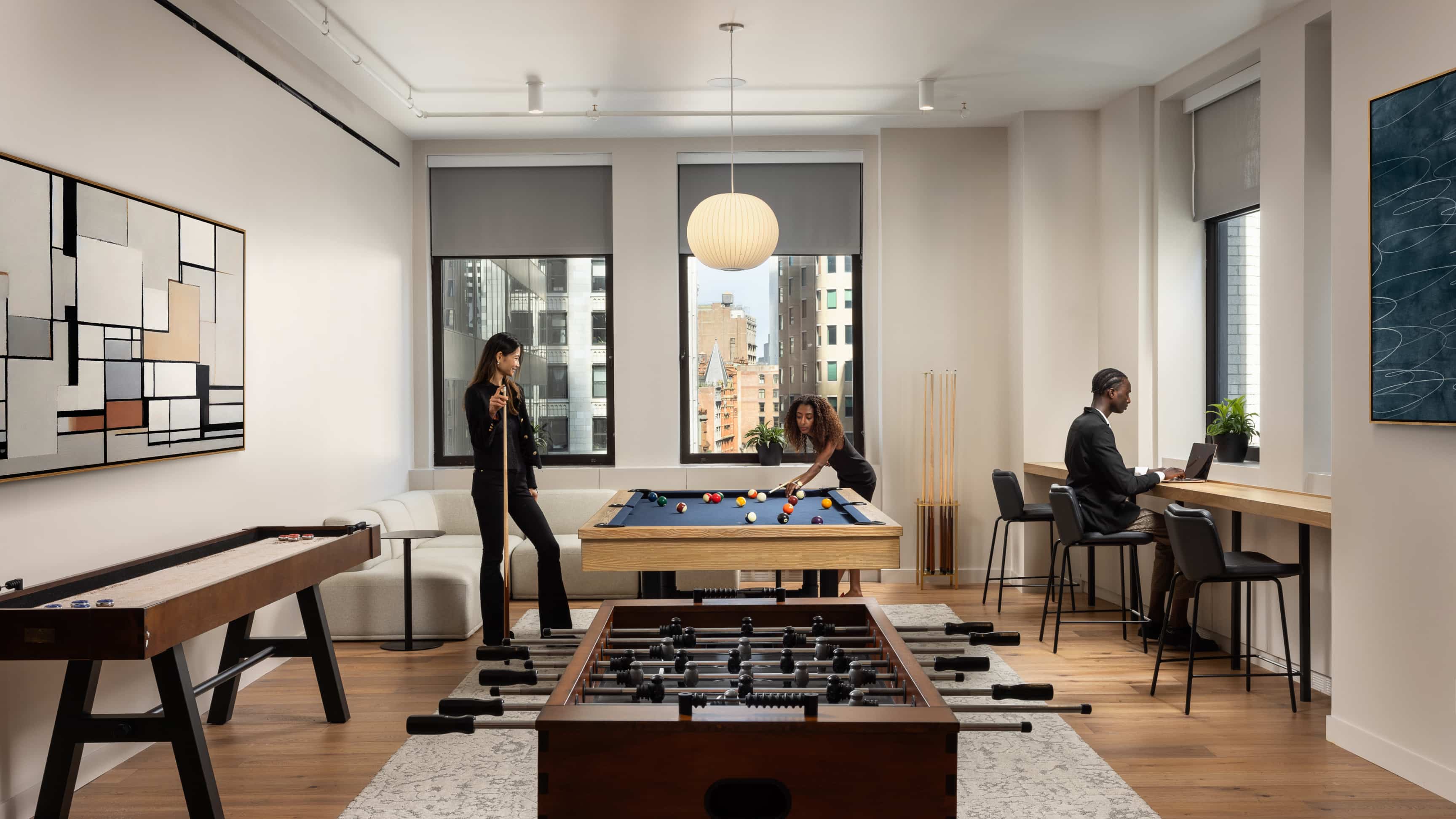 A dynamic amenities space where Philadelphians can get inspired in multiple lounges, rentable conference rooms, an outdoor area, and more.